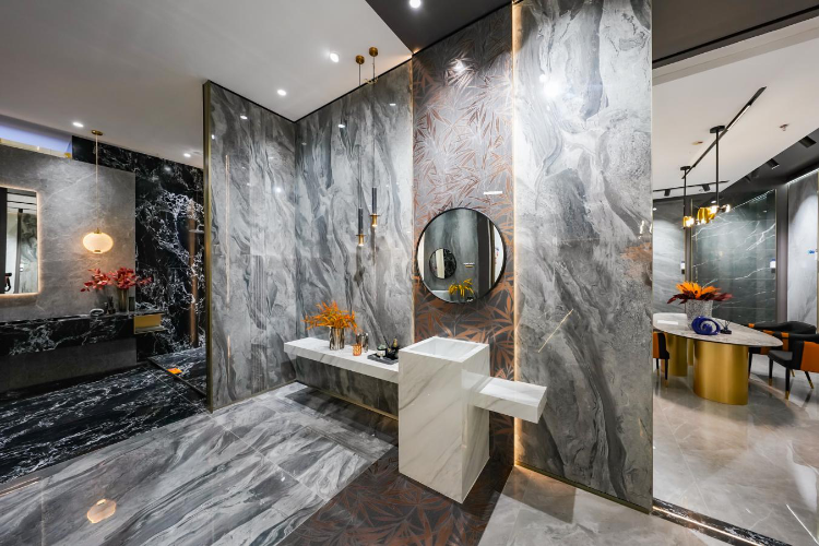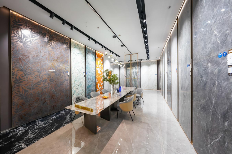 欧神诺瓷砖展厅由多位国际设计师联合打造而成,紧跟国际时尚潮流,应用简而奢的经典风格,更适应高端消费群体的审美偏好,同时分为品牌馆、高端岩板定制馆、N类产品馆、功能瓷砖馆、工程馆等多种风格区域,完美匹配欧神诺覆盖全品类的近千款特色产品。