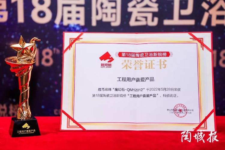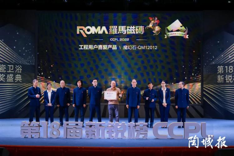 本届新锐榜吸引了200+企业陶瓷企业参与角逐,竞争激烈。羅馬磁磚的岗石系列-魔幻石,不负众望,以匠心独运的设计理念及独 创的研发工艺,斩获“工程用户喜爱产品”荣誉大奖。