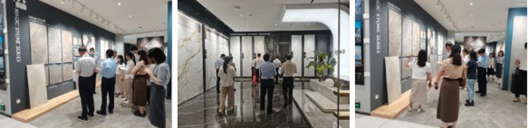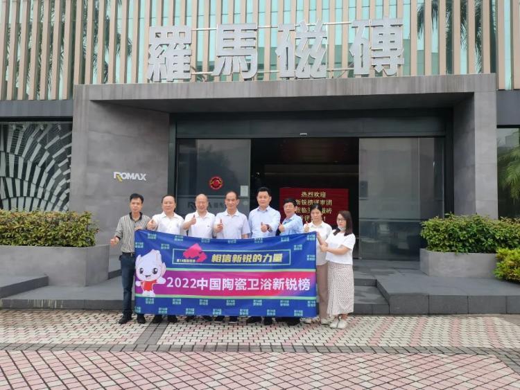 早在5月13日,由新锐榜评审委员会主席、国家科技进步奖评委专家黄芯红,佛山陶瓷学会执行理事长、新锐榜资深评委专家徐平,国家陶瓷及水暖卫浴产品质量监督检验中心副主任、教授级高工区卓琨,佛山陶瓷学会副会长黄惠宁,中国室内装饰协会专业委员会委员、中国建筑装饰协会软装陈设分会副会长汪志科,中国建材集团咸阳陶瓷研究设计院原常务副院长、新锐榜评审资深专家李转,陶城报社执行社长、总编辑戴科丽等组成的2022新锐榜评委团,到访羅馬磁磚华南总部展厅。羅馬磁磚品牌总经理张瑜、羅馬磁磚品牌产品研发经理伍健玲等华南总部领导出席接待。