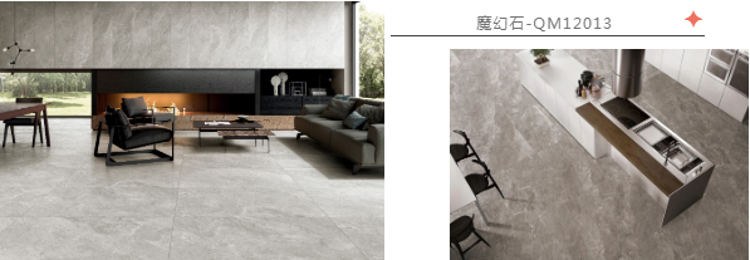 魔幻石,源自意大利原创设计,纹理就像风化侵蚀过的岩石一样,灰色的石痕自然随意的分布在底纹上,为其增加了大自然风化的痕迹,使产品更加的具有真实、沧桑的石材质感,加上厚重而自然的色调,二者浑然一体,散发着魔幻色彩。工艺采用模具使表面呈现凹凸肌理、结合哑光干粒与亮光干粒,让产品表面形成的光泽对比,体现产品逼真度。一石9面设计,将魔幻石的自然随机纹理表达得完 美无遗。高 级质感的纹理设计,成就奢雅有度的现代家居美好生活。